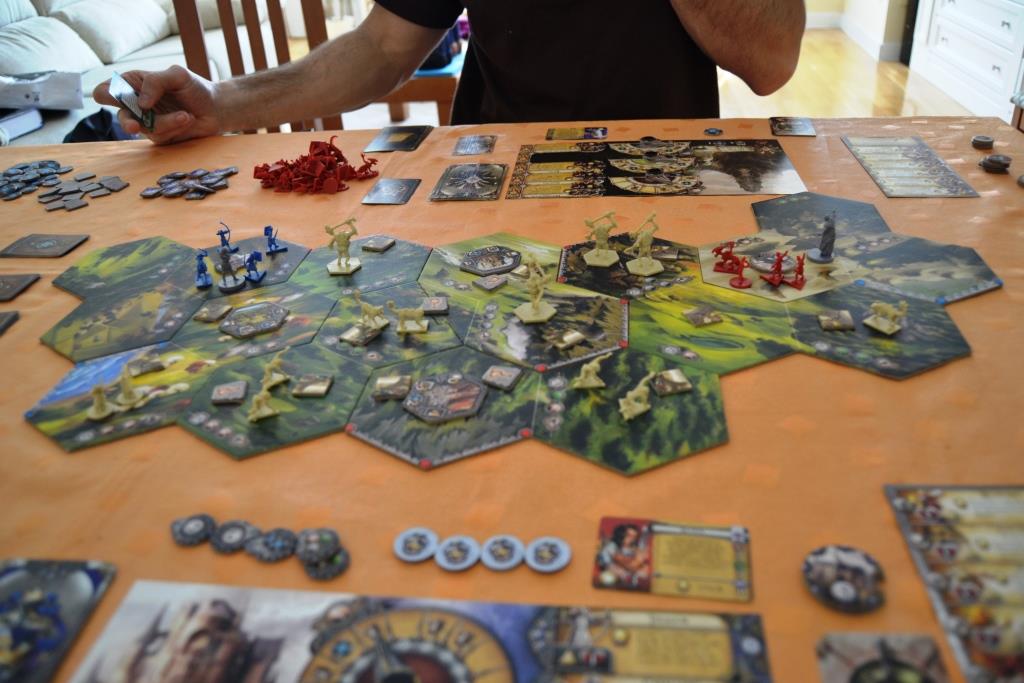 I was surprised by the dynamics. As I said before, the whole concept of fighting along all the year, with different events taking place during the seasons, is totally ace. Completely refreshing for me, a really cool experience. The board looked a bit too little to me, that forced soo many battles, but it wasn't bad at all. When more players are involved, more tiles are set, so it's fine. Another cool thing of this is the use of independent hexagon tiles, allowing whatever combination you may want, so there won't be two identical boards ever. I really like that a lot. The campaign mode along the years is also quite well thought and developed. This is not just about throwing armies to clash one against the other (though you may have got that impression by this AAR!). The way you collect resources and how you administrate them is essential. So it is the use of neutral units. We mostly fought against them, but sometimes we got to use them as allies and they were pretty cool. In fact there were a couple of times in which we tried to get a neutral army (there was a tile with five or six neutral units; getting that for your side would have been amazing), but we didn't succeed.