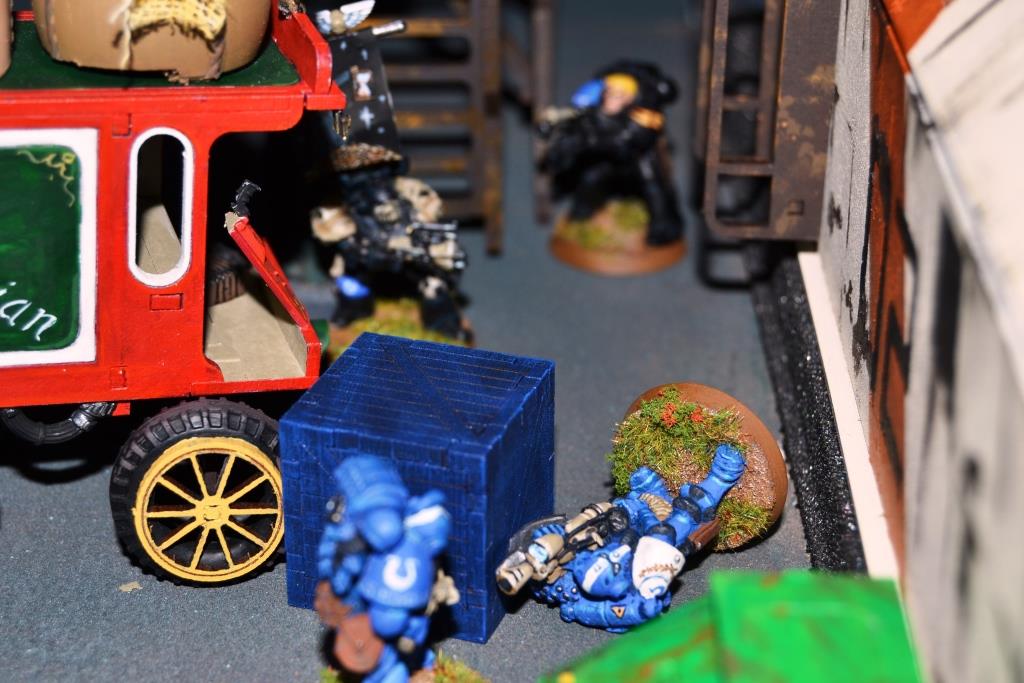 What's the story? A group of rogue Ultramarines have stolen a valuable Mk.I Terminator Armour. Heresy! They have come to this populated area knowing that Mama Balaklava's is the right place to go when you want to sell any piece of tech and leave no trace. Greed! But of course such an infamy cannot be left unpunished. Master of Sanctity Tow Takka-chow has dispatched two of his best Chaplains to take some Field Police and go hunt the rebels. Retribution!